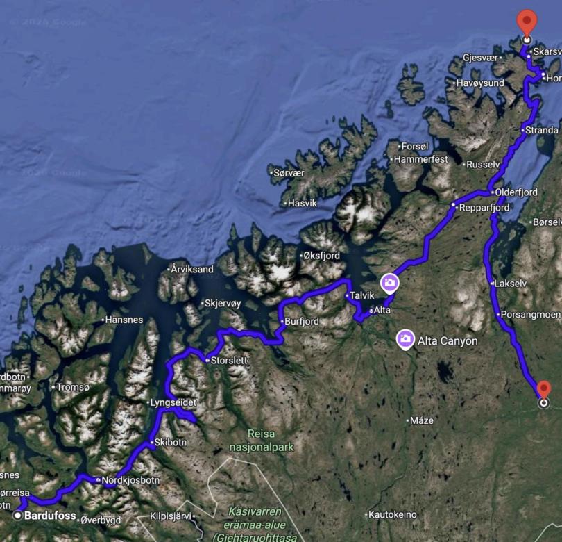 Eg har alltid hatt lyst til å sjå resten av Noreg, nord om Trondheim. Eg har vore i Bodø og Brønnøysund ved hjelp av fly, men det er noko anna å sjå Noreg frå landevegen. Etter lengre tid vurdering kom dagen. Målet var Nordkapp, men var usikker på om eg greidde det. Mykje spaning gjorde at eg stod opp før hanen gol. I 2022 oppdaga eg at eg kunne nytte bilkamera i min 2022 Byd Tang til å ta vare på minnene. Som du ser av videoane er kvaliteten under pari, men for meg friskar videoane opp minnet. Eg ser noko heilt anna for meg enn det du vil gjere. Kan til tider minnast det eg lytta på einskilde stadar.