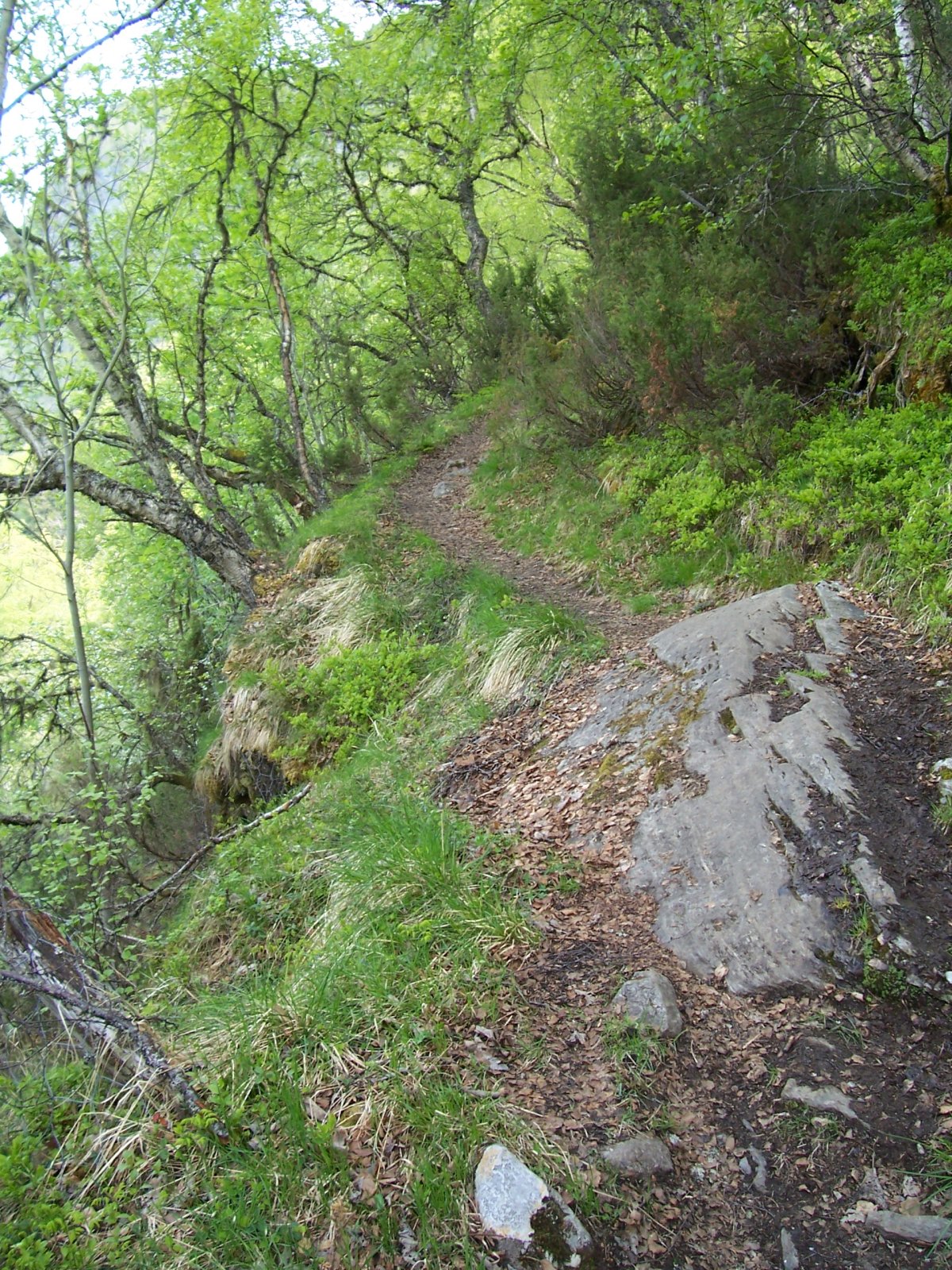 Har du teke turen til Bjørgahaug, bør du vurdere om du vil gå til Hangsete. Hangsete er ein støl som ligg eit stykke over der Fatla-elvi stuper ut over fjellet. Stien er lett å følgje og er ikkje så bratt som første delen opp til Bjørgahaug. Frå Bjørgahaug går du innover og i sikk sakk opp til Anhovden. Dette er den brattaste delen. Etter Anhovden går turen innover mot Fatlaelva i slak motbakke. Ved Ste kan du, like ved skiltet, ta turen opp på den vesle høgda og nyte utsikta over fjorden. Har du med deg kikkert, og er der på det rette tidspunktet, kan du studera nærare på cruiseturistane som kjem inn og ut frå Flåm.
