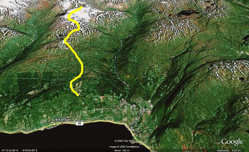 Alternativ som går via Stokksete, Aoreveitane og Okslahaugane: