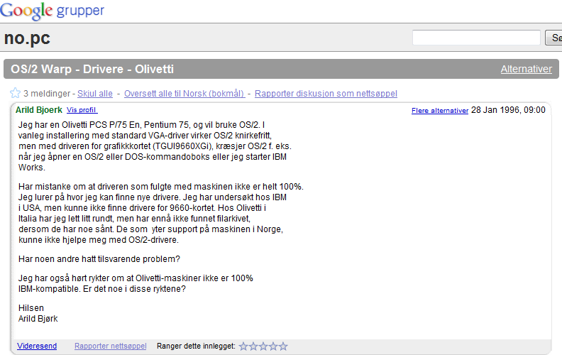 So langt er det ikkje kome, men i dag, 28.01.11, er det 15 år sidan mi første posting på internett. Meinar å hugse at eg teikna meg for tilgang mot slutten av 1995 via Schibsted Nett. Om ikkje dei var pioneren på kommersiell tilgang for privatpersonar, så var dei rimeleg tidleg ute.