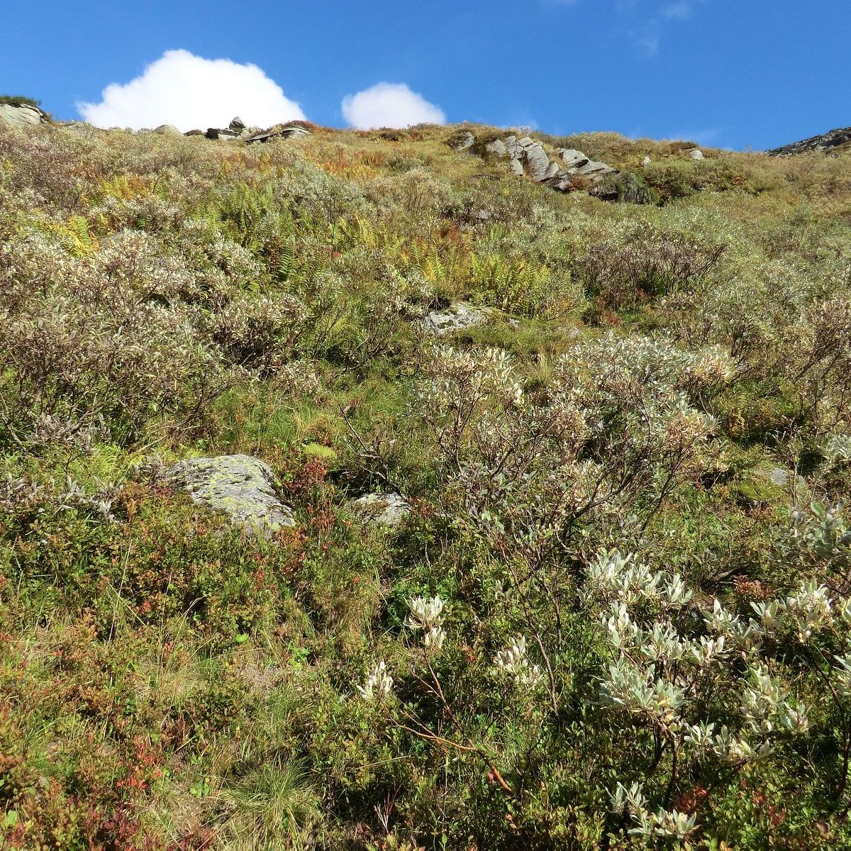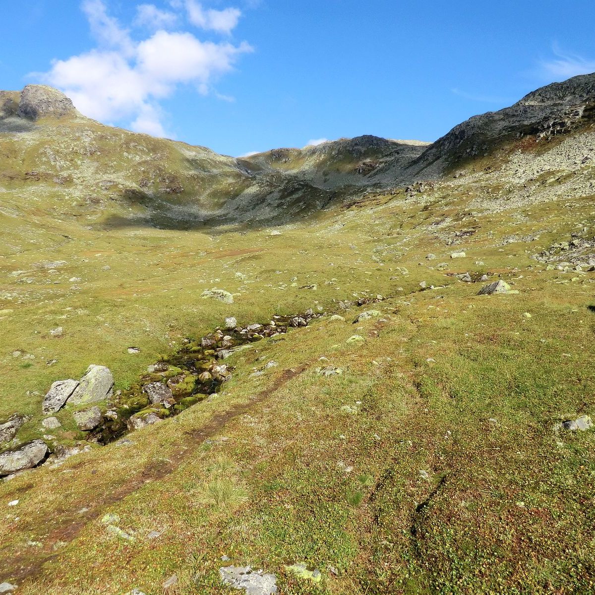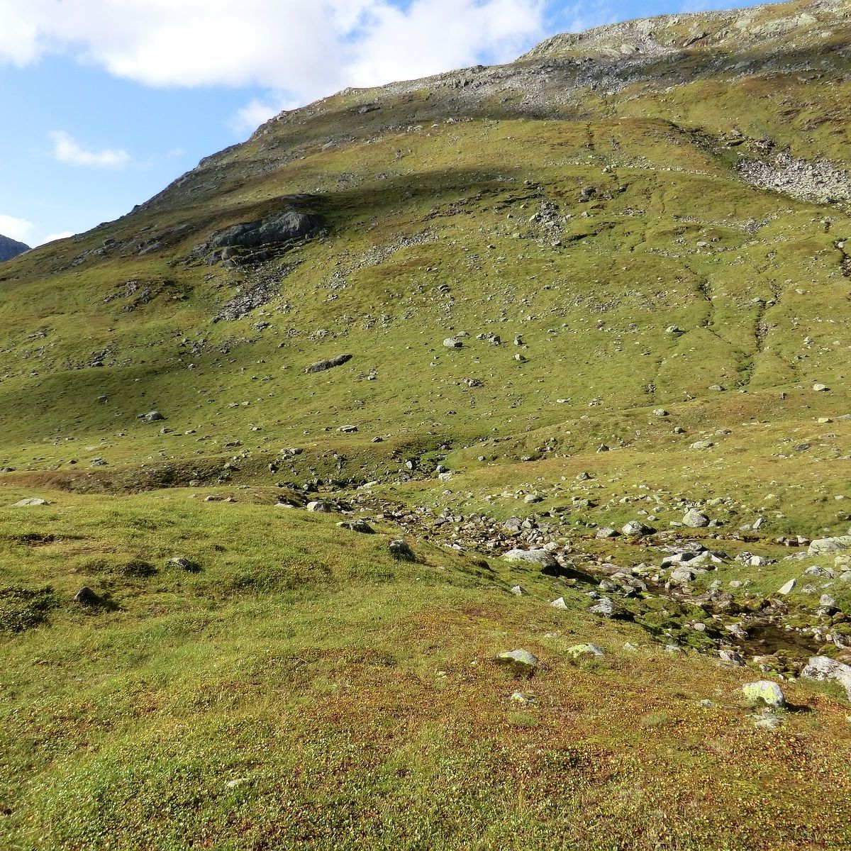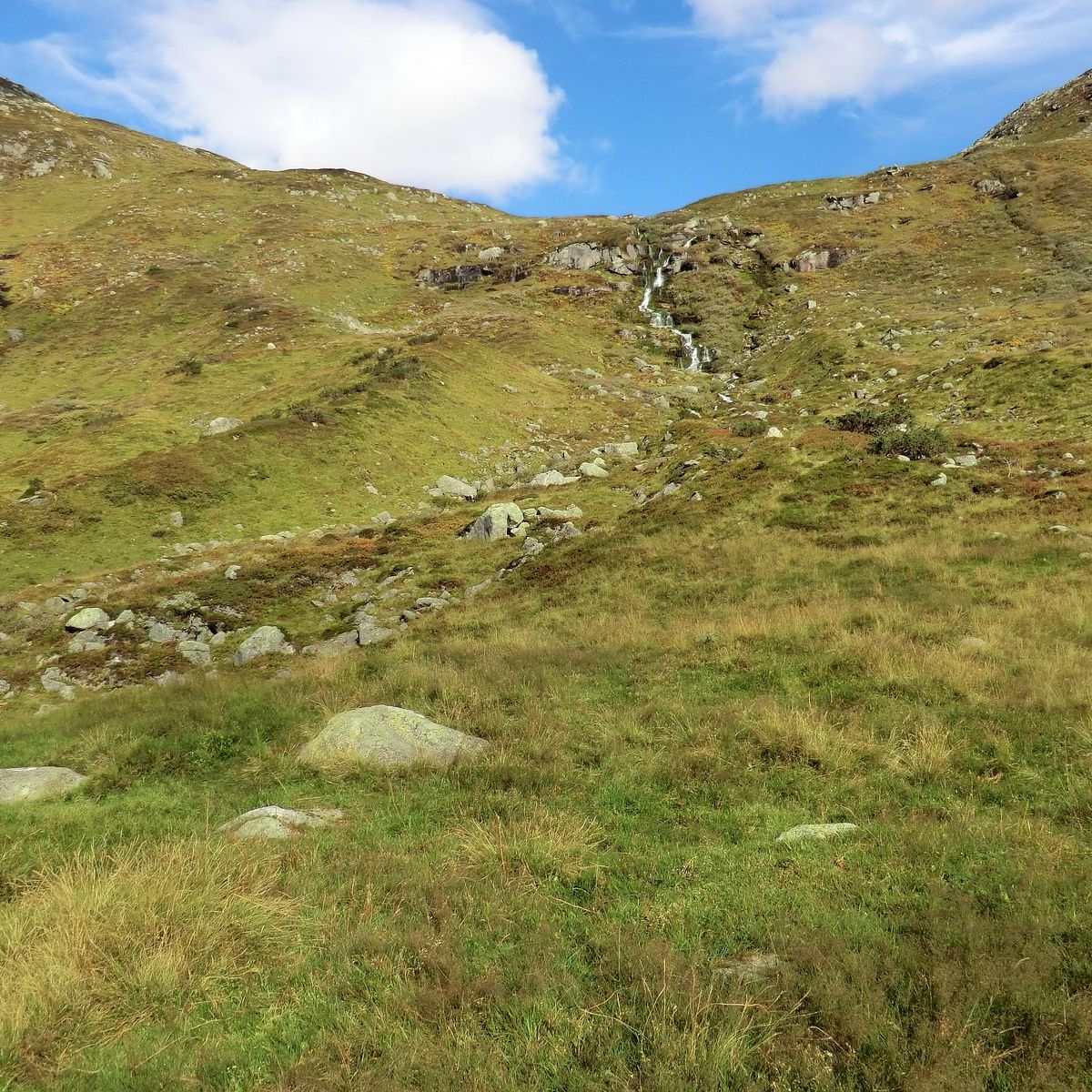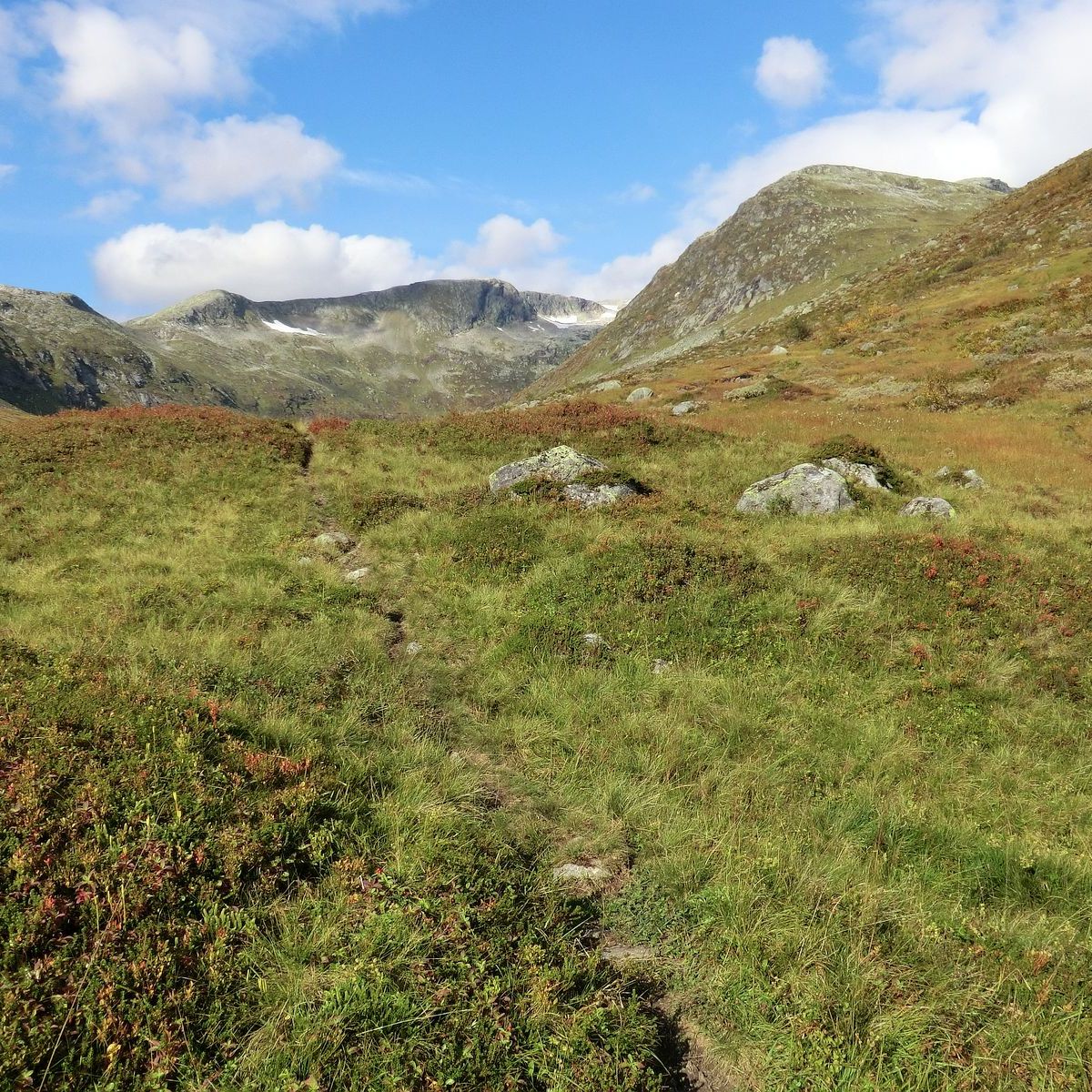 Når du er komen fram til elva Røsebotna, kryssar du ikkje elva. Du skal følgje dyrerekkje opp lia på høgre side (austsida). Bit deg merke i 2 store steinar som ligg til høgre for elva, øvst i lia, mot himmelen. Bruk steinane som målet for oppstiginga. Stien blir mindre tydeleg og så godt som forsvinn halvveges oppe i lia.