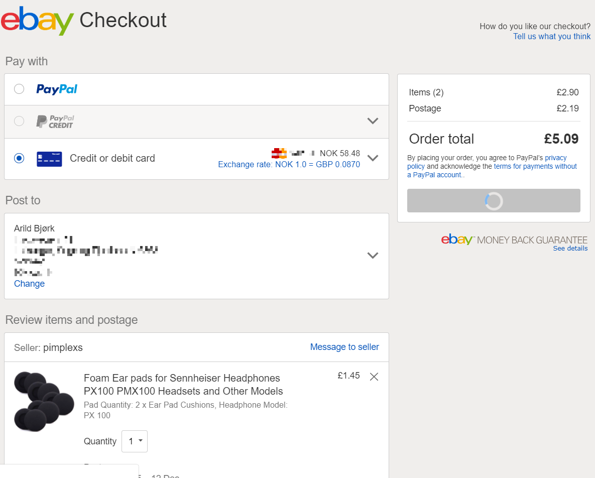 Mine Sennheiser PX-100 (favoritten) og PX-100-II er velbrukte. Lyden er framleis god, men øyreputene i skumgummi morknar opp etter mange års bruk. Det er på tide å få skifta dei. Eg gjorde nokre søk på internett, men greidde ikkje å finne desse putene til sals i nokon norsk nettbutikk. På eBay fann eg nye puter til begge hovudtelefonane. Kvart sett kosta rundt kr 15. Samla kom kjøpet på kr 60 med porto. Sidan kjøpet er godt innafor toll og meirverdiavgiftsfrie grensa på kr 350, vil det ikkje koste meg noko meir.