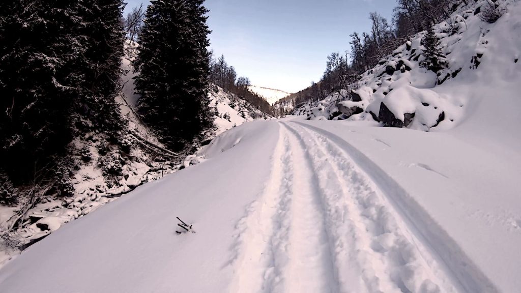 Eg hadde ikkje med GoProen på aketuren, men her får du oversikt over den litt over 3 kilometer lange aketuren ut dalen: