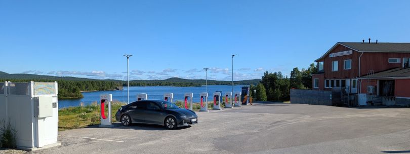 Lading: Som under forrige reise valde eg å basere meg på Tesla og Ionity-abonnement. Dei er klart rimelegast, omlag halv pris med kr 3 – 4 per kwh. Ionity hadde førsteprioritet sidan dei støttar 800 volt-arkitekturen i bilen. Vanlegvis kjem eg til ladarane med 15-20% igjen på batteriet. Eg køyrer ikkje batteriet i botn sidan eg likar å vere budd på det uforutsette. Alt fungerte og eg var ofte einaste bilen som lada. Med maks ladefart på 240 kw og ei rimeleg flat, trinnvis kurve er eg med ein 350 kw Ionity-ladar vidare på mellom 15 og 20 minutt. Etter 3-4 timar i bilen er det godt å bruke minuttane til å gjere nødvendige ærend og gå litt rundt før neste økt bak rattet. Med ein Tesla-ladar, som i dag berre leverer 400 volt, er maks ladefart rett under 100 kw og ladestoppet vert i overkant av 30 minutt.