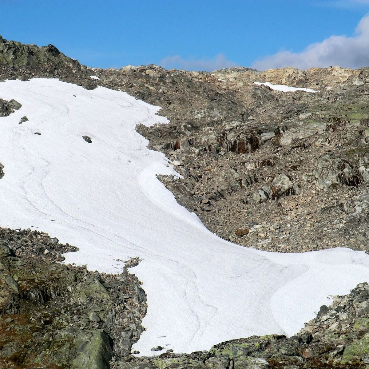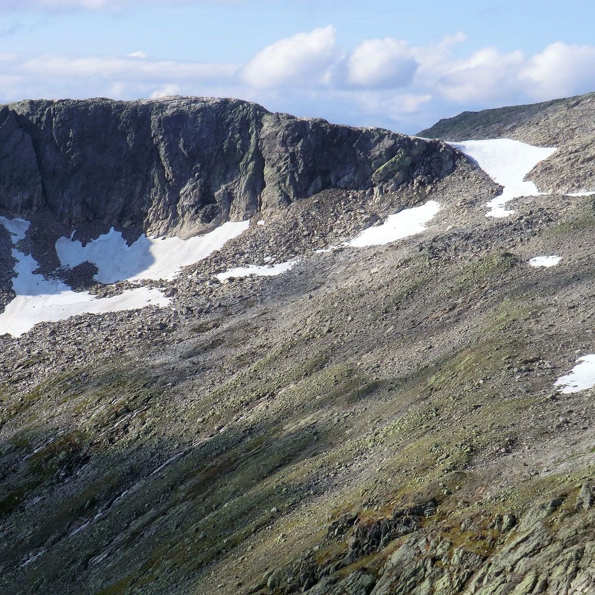 Godt og vel 2/3 av turen opp frå vassinntaket går du inne i skogen. Lia er prega av mykje stein. Her er det viktig å sjå seg for før ein set foten ned sidan stien ikkje er mykje gått. Stien byrjar slakt og skråar nordaustover mot Slettabotn. Etter litt snur han meir nordover og stigninga dreg seg til. Litt oppi går han over i ein litt meir nordaustleg retning før du i nærleiken av skogsgrensa nok ein gong går brattare igjen. Ikkje ver overraska over at du vil kome til å sjå ein del på skotuppane. I skogen er det rimeleg greit å følgje raudmerka.