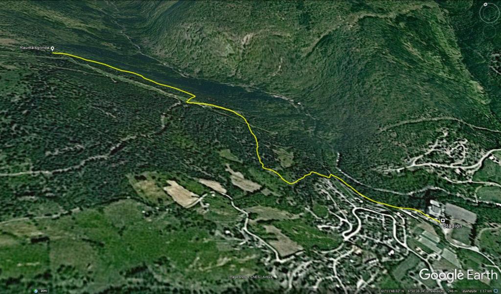 - Etter linetrasseen (frå aust)