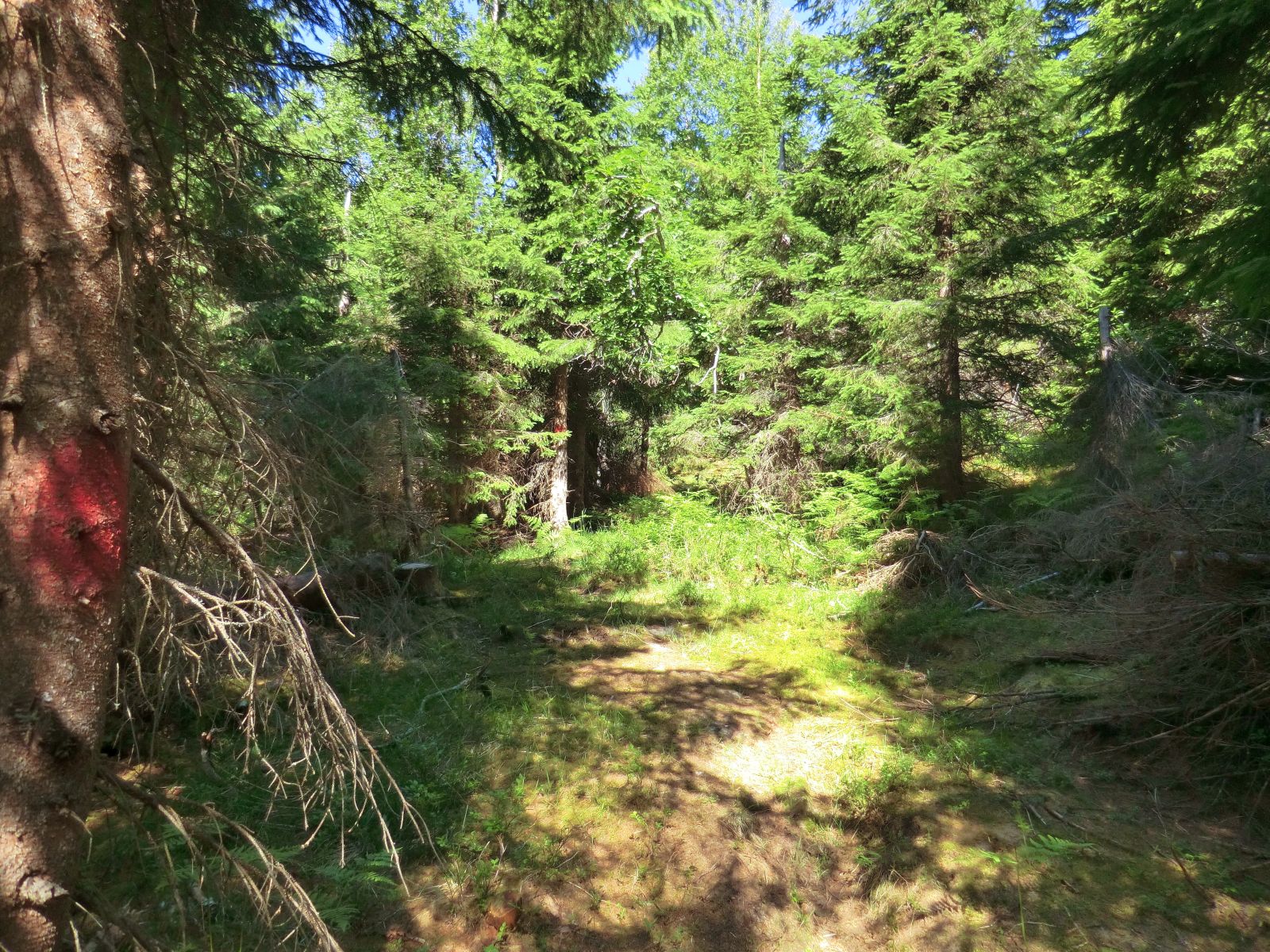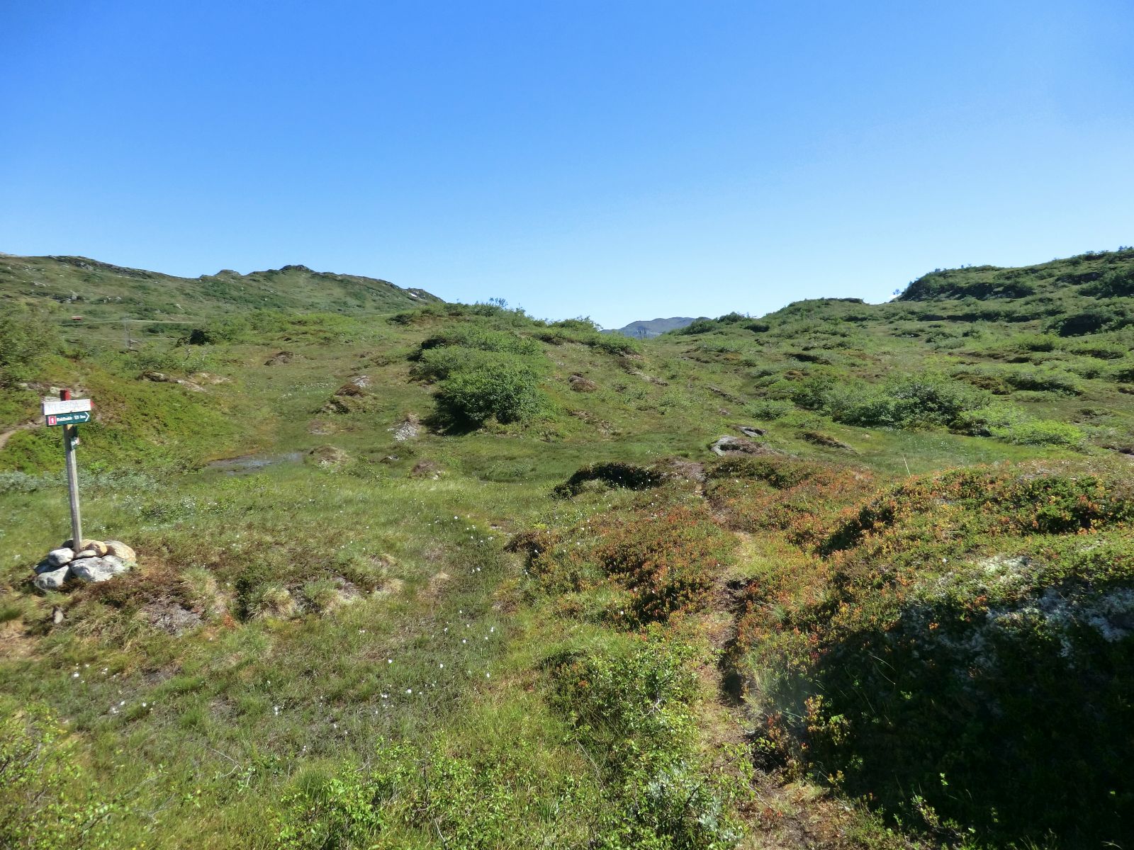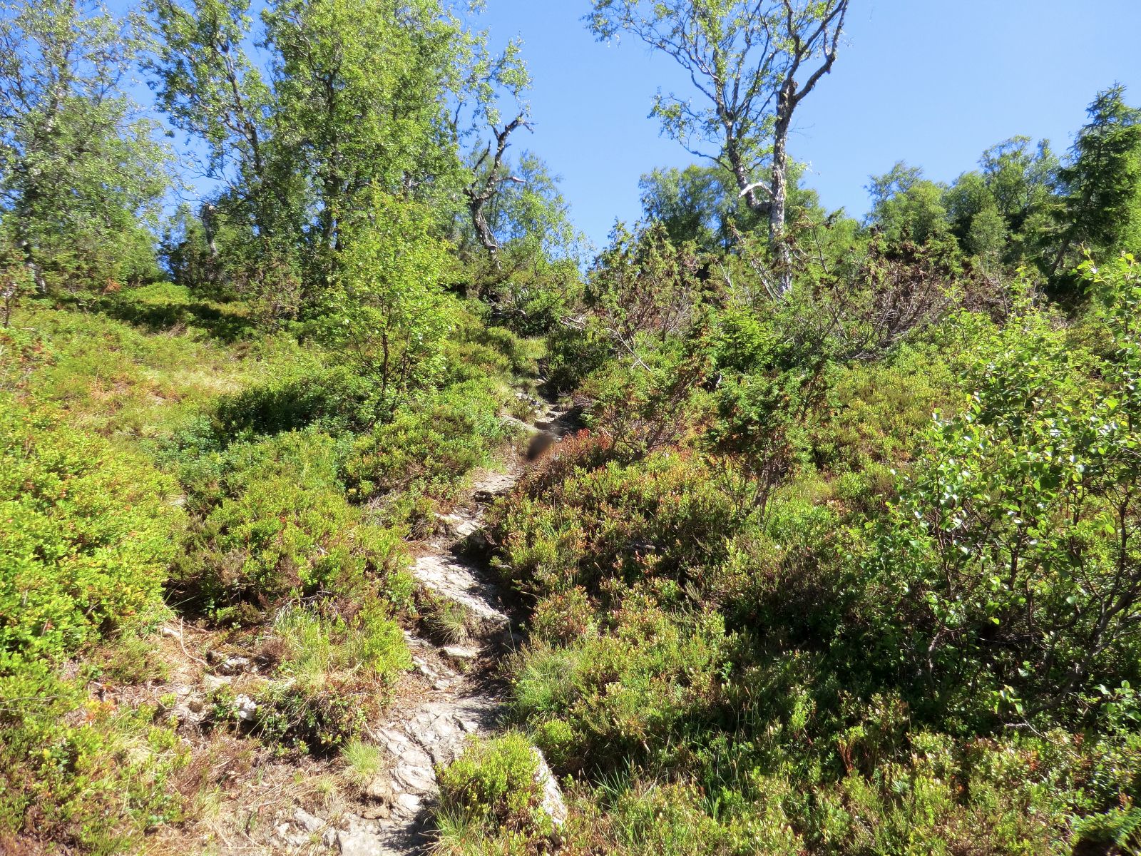 Like før eg kjem til dei doble mastene, knekker eg av mot den siste masta, søraust for dei. Frå masta skråar eg i sørvestleg retning til eg kjem til stien som tek deg opp på austsida av Smørkletten. Oppkomen rundar du først vestover og så sørover, i ytterkanten av myra, til du er komen til den sørvestlege toppen og kan ta inn utsikta.