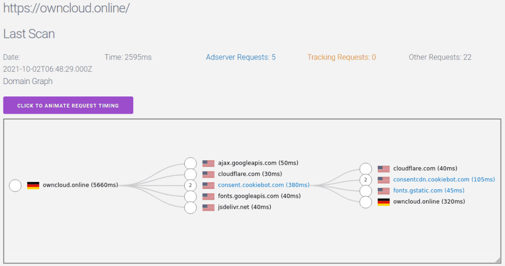 Alle som lovar mykje bør ein kontrollere om held ord. Ofte nyttar eg https://pagexray.fouanalytics.com/ til å få oversikt over kva som blir henta når ein vitjar ei side. Kontrollen av owncloud.online overraska meg: